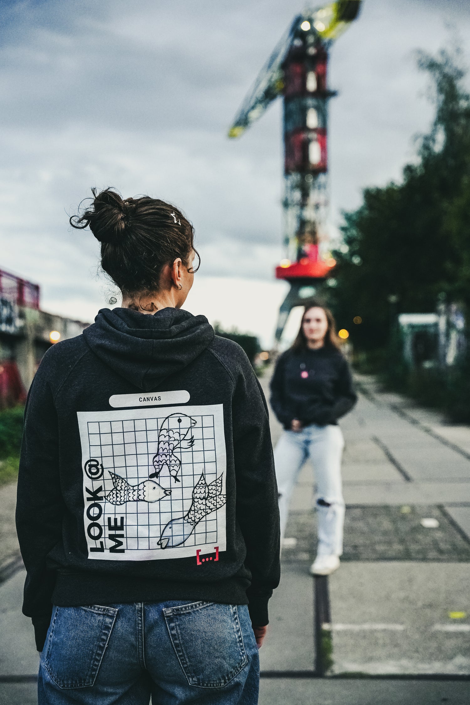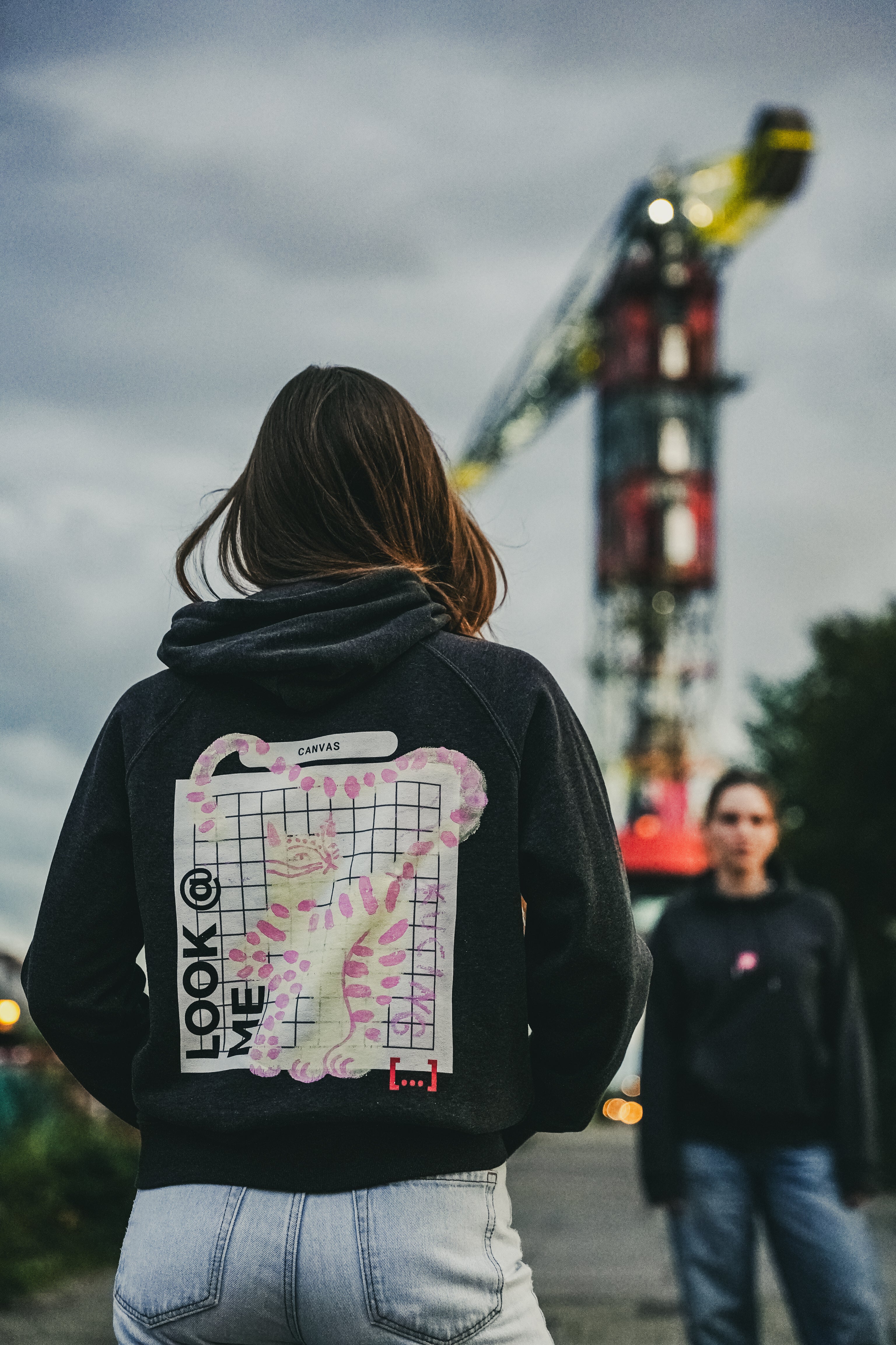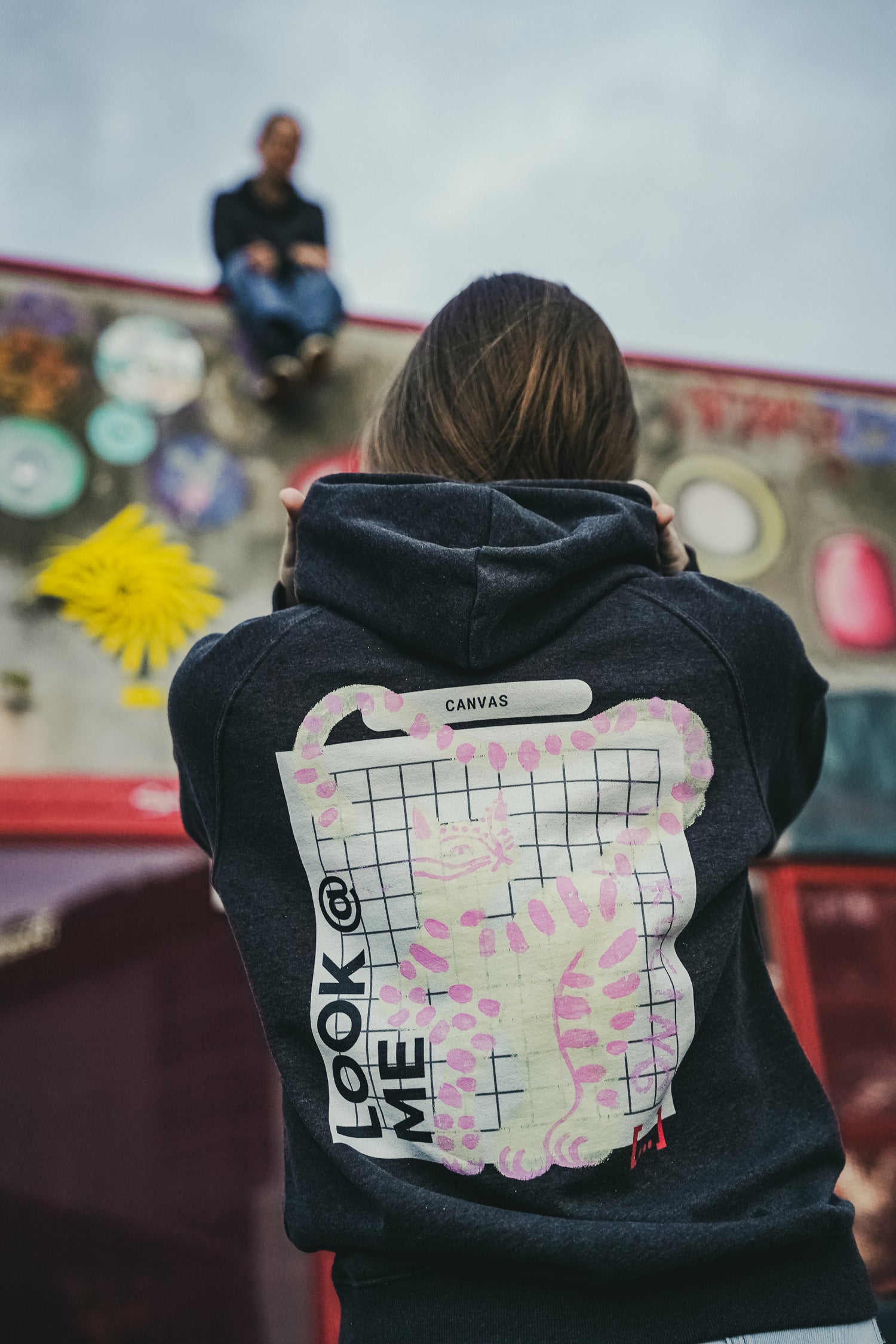 Premium - Charcoal Grey Hoodie - Small White Canvas